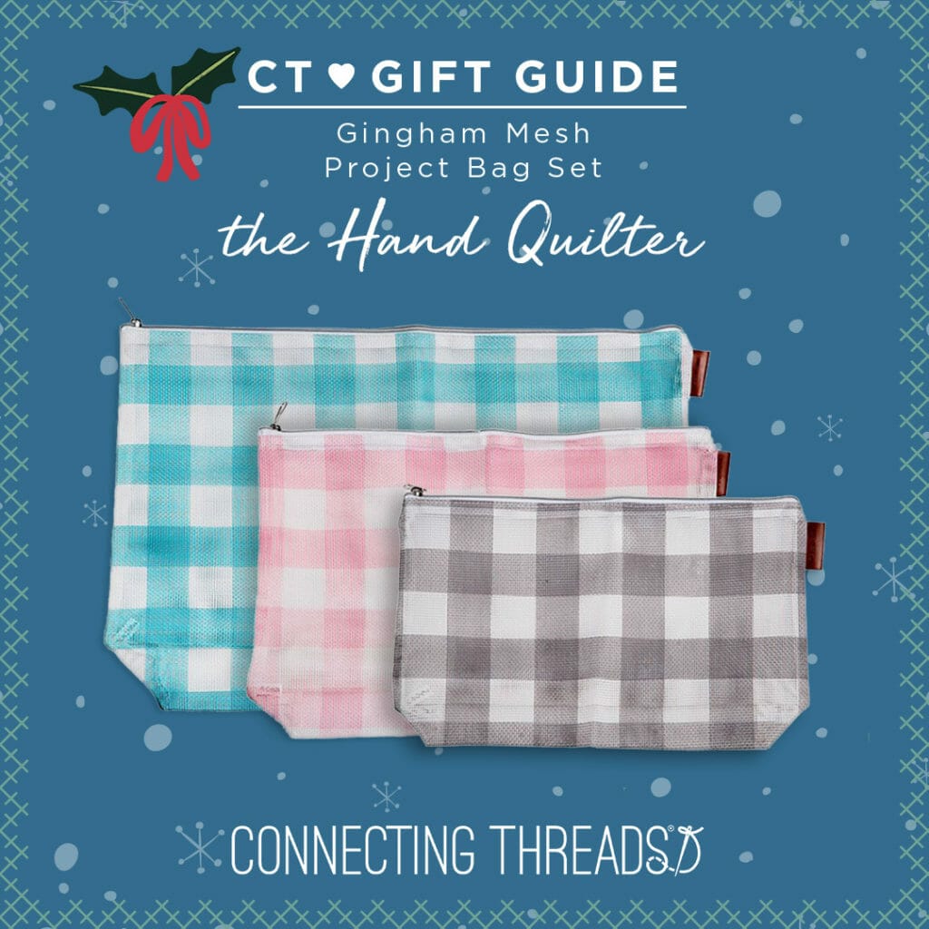 Hand quilting of any kind requires patience, skill and organization. When taking on an applique project, for example, the amount of tiny pieces involved can get a bit overwhelming. These Gingham Mesh Project Bags are ideal for quilt ventures of any size, able to hold fabric scraps and spools of thread until you’re ready to pull them out and get to work!