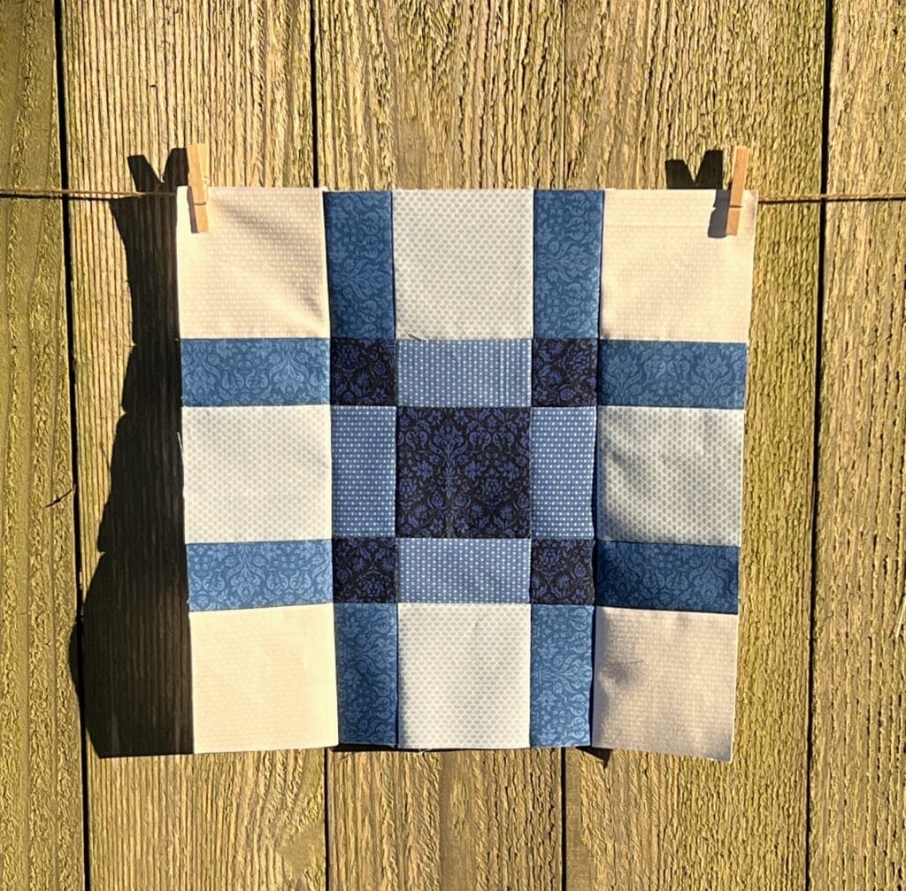 The photo doesn’t really do this block justice. I was fighting the wind and this was the best one I could get while the weather was somewhat cooperating. As I’m sure you’ve all figured out by now, I’m a quilter, not a photographer.