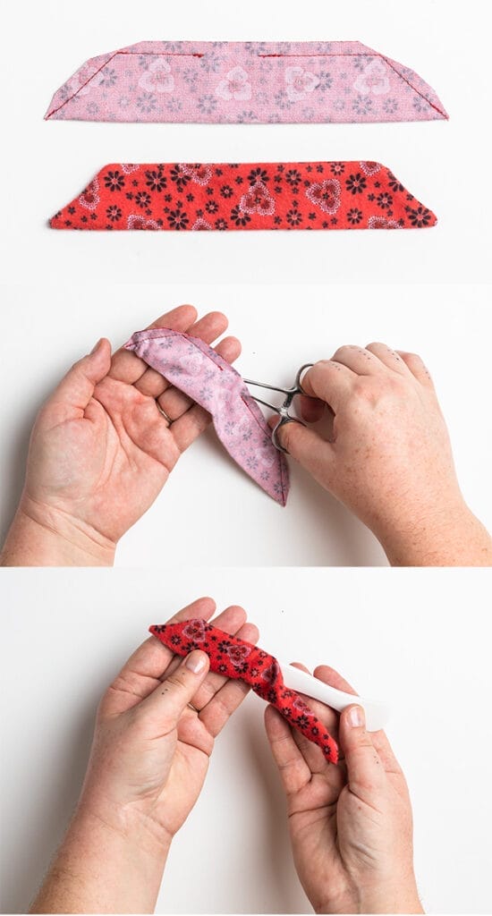 8. Trim the corners and turn tail piece right side out. Using a Gripper to pull the corners right side out can be helpful and the Point 2 Point Turner is great for getting crisp points! See Image 7 for reference.