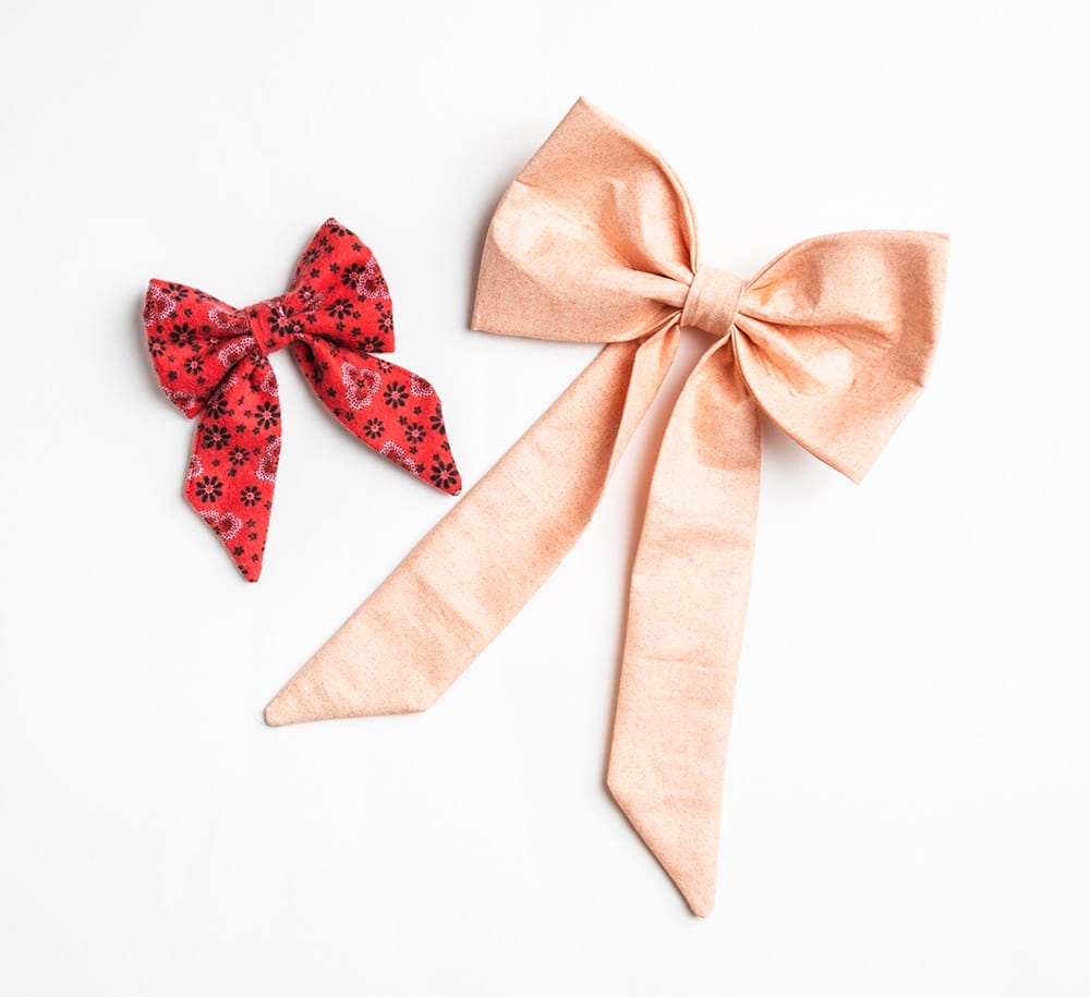 - Resizing this pattern is so simple! Want a larger bow? Double the size of each piece for a big, décor-sized bow! Want a longer tail? Add 2-4” to the tail piece! Experiment with the size of your pieces and find what works best for your projects!