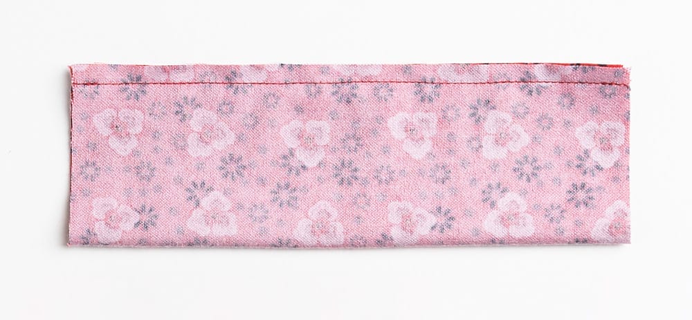 3. Press the seam open and turn right side out. Press the piece flat, making sure that the seam line is on the middle, as seen in Image 2.
