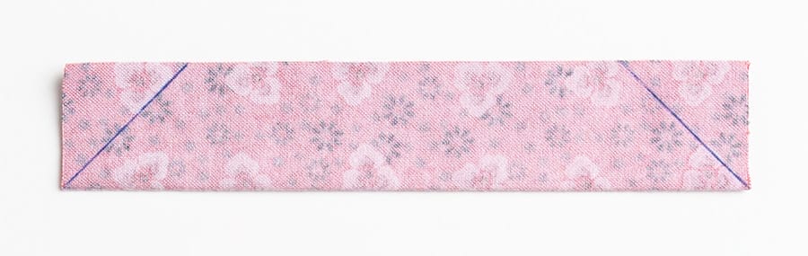 6. Take the 8” x 3” tail piece and fold in half, long-wise, right sides together. Take a ruler with a 45º angle line and place along 1 ½” sides. Mark a 45º line on each short end. See Image 5 for reference.