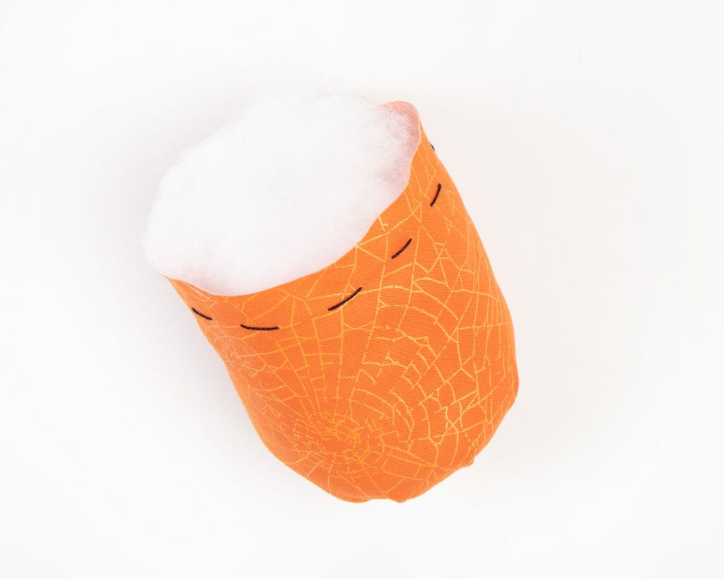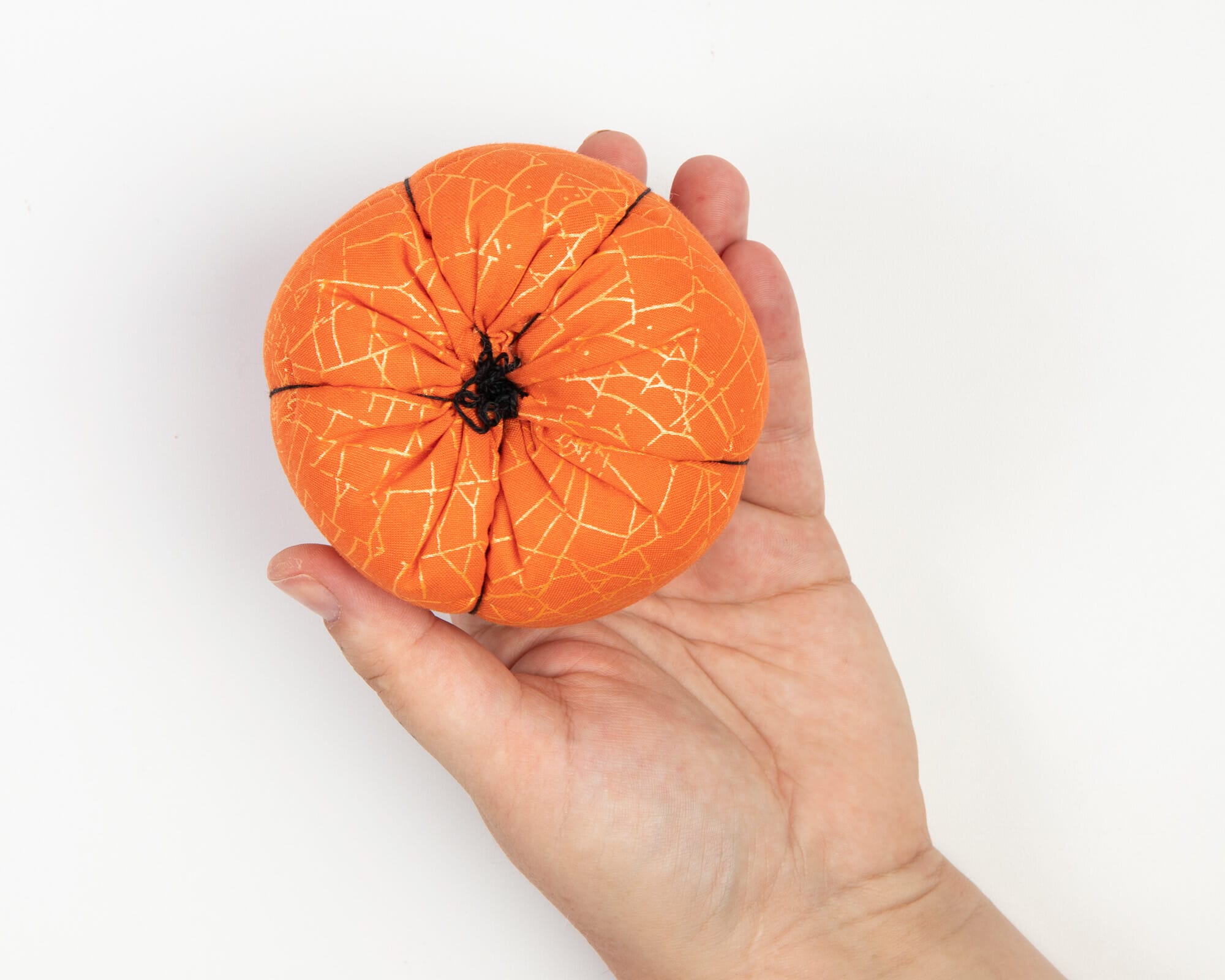 Congrats, you made an adorable fabric pumpkin! If it’s a little wonky, it’s easy to adjust: you can move around the stuffing and modify the position of the ribs.