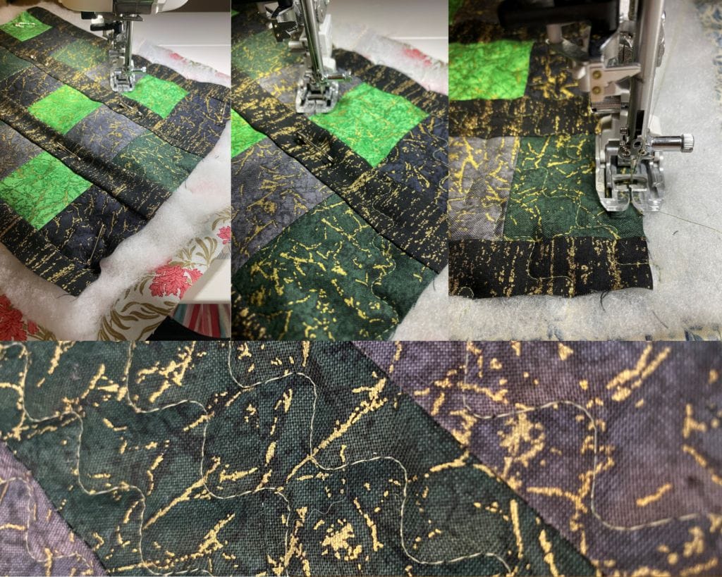 By patchwork piecing blocks and quilting with scrap batting, this project became a fun way to spend an afternoon while also using up some leftover bits from other projects.