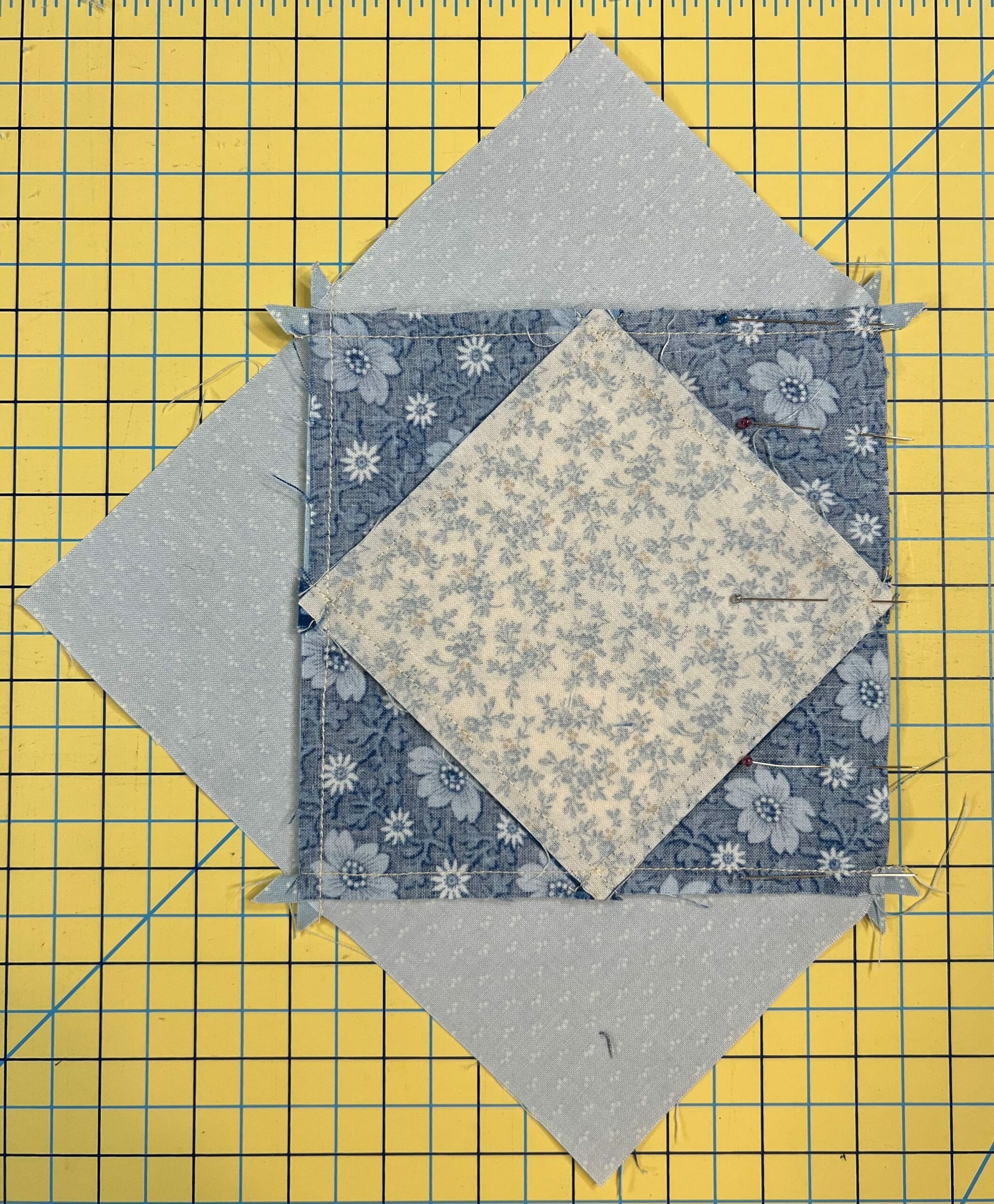This block is a square-in-a-square…in a square! For this block, we will be making these using the no-waste method, but it can be tricky to get things to measure correctly.