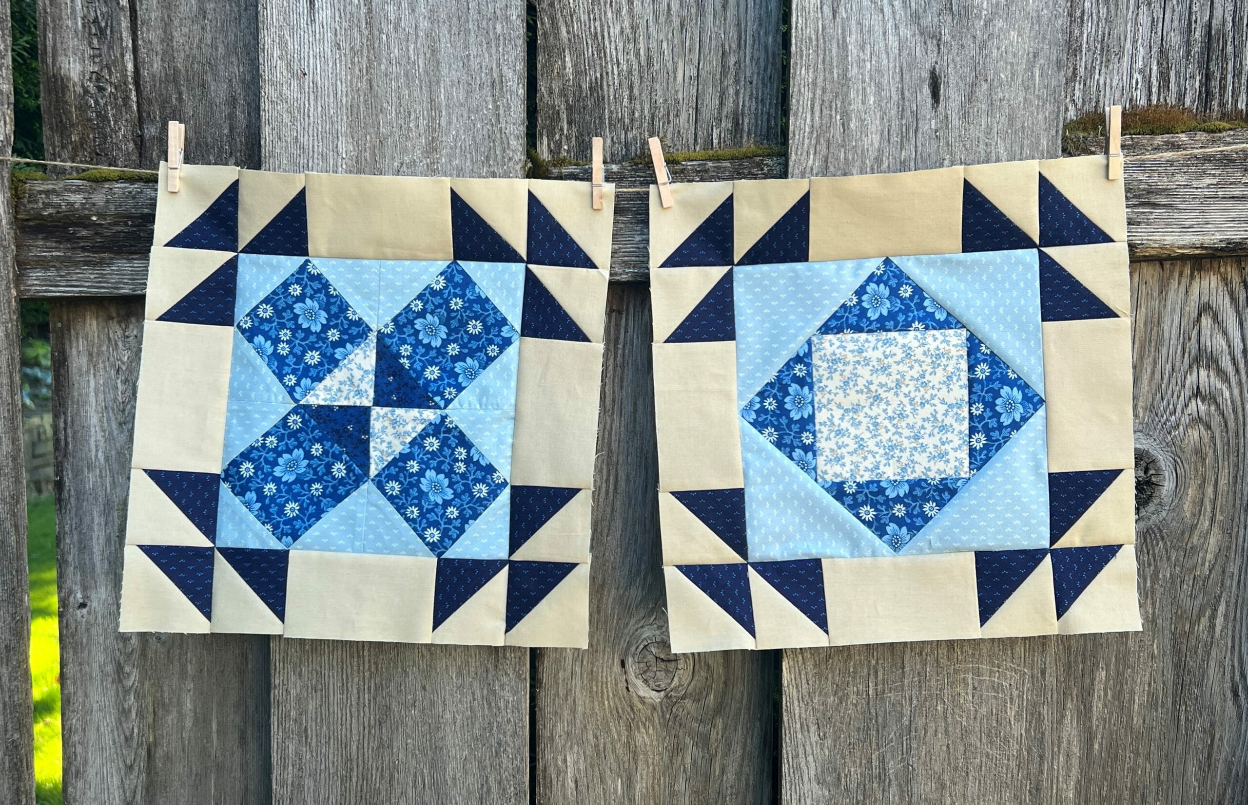 This month we only have two blocks, along with the sashing strips. Each block has a square in a square design. There are two methods to make these units, so wrote the instructions to showcase each one.