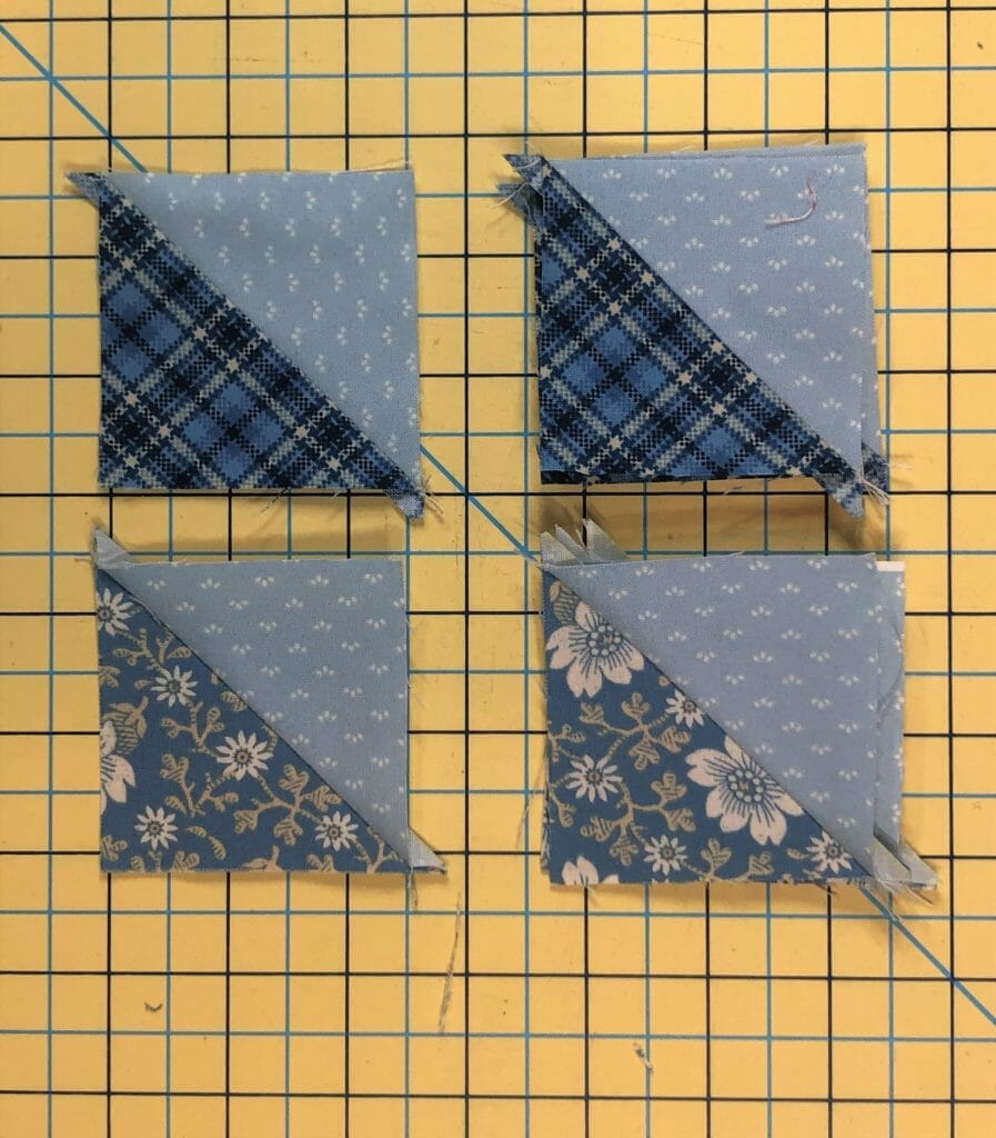Using a ¼” seam allowance, sew each pair together. Iron your seams open and repeat this process with your right side blocks.