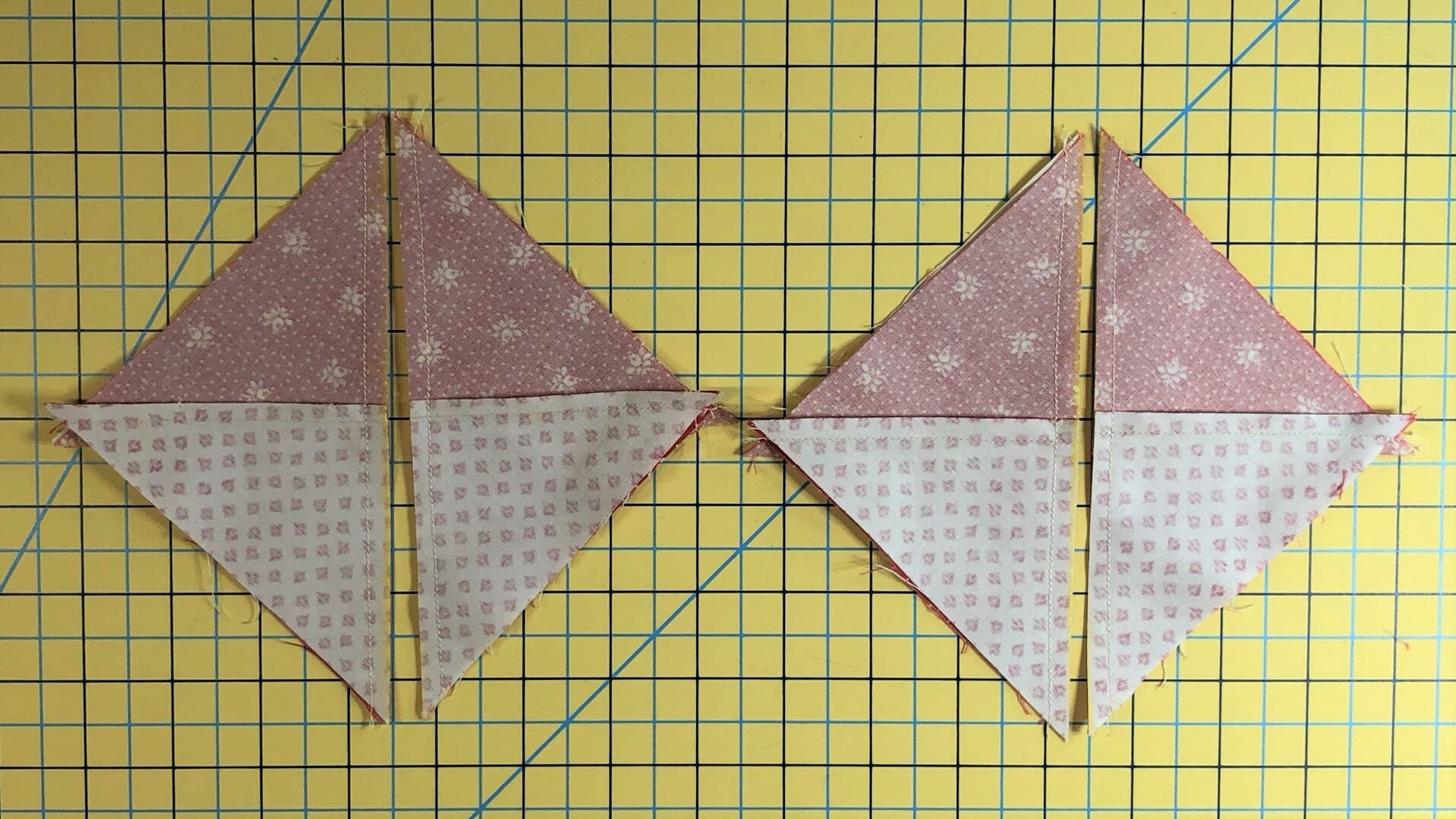 Using a ¼” seam allowance, sew each pair together. Iron your seams open and repeat this process with your right side blocks.